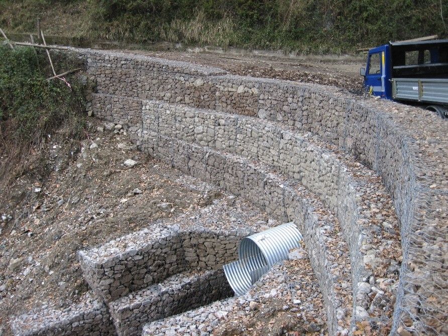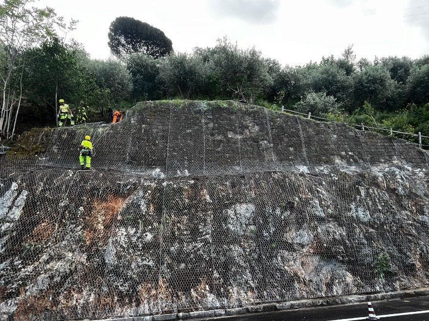- Rivestimento di parete con rete metallica in aderenza a doppia torsione